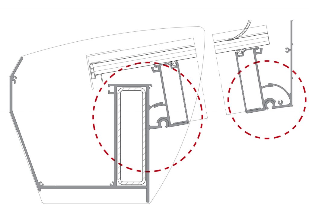 Het scharnierbare muur- en gootprofiel zorgen voor een flexibele dakhelling van 5 tot 15 graden. Dit is een van de voordelen ten opzichte van vergelijkbare modellen van andere aanbieders.